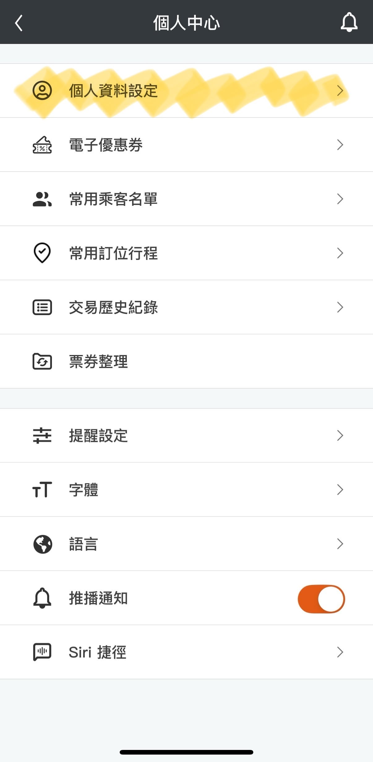 在 APP 中預先設定公司統編與抬頭,之後購票時即可自動帶入。
