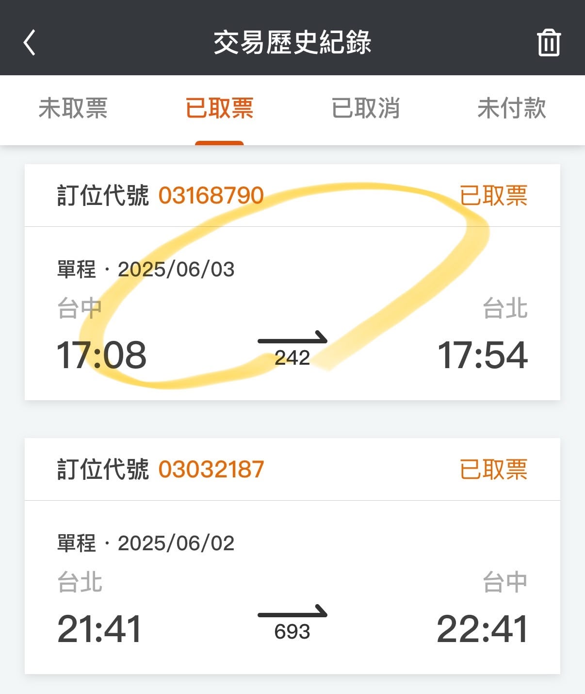 步驟 2:查看已購買的車票