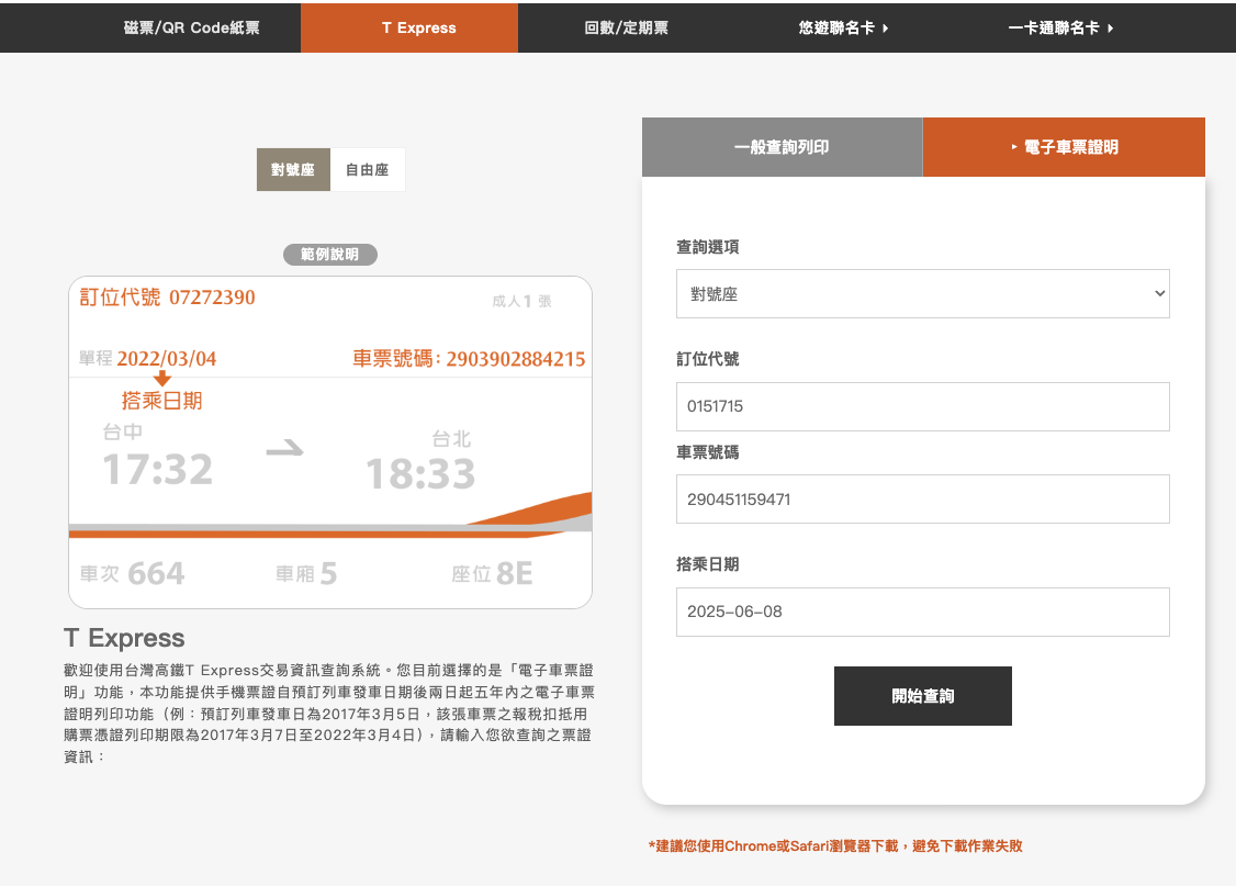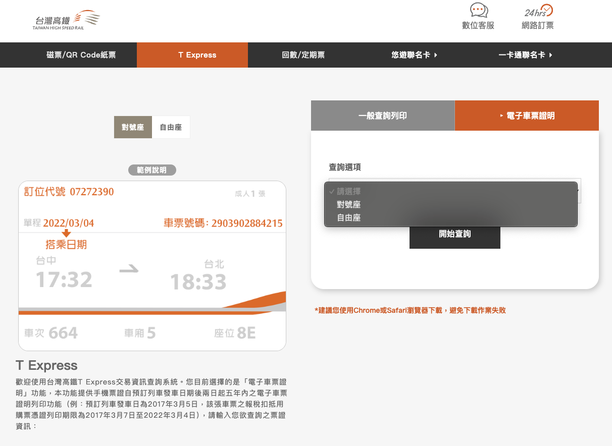 網址台灣高鐵 T Express 網頁下載